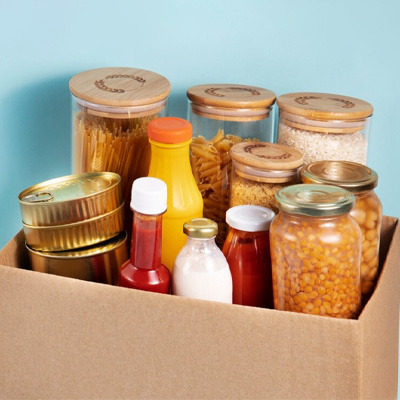 - Shelf-stable foods: cereals, pasta, canned goods, spices
